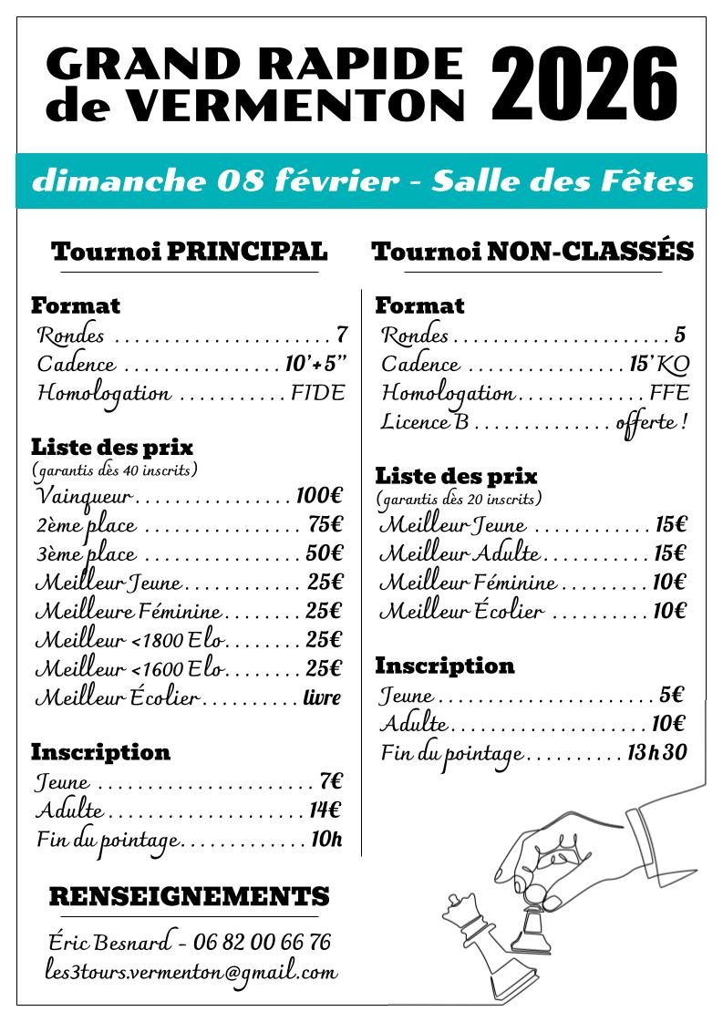 Le club des 3 Tours organise son Grand Rapide 2026 le dimanche 08 février à VERMENTON, avec 2 tournois simultanément :
