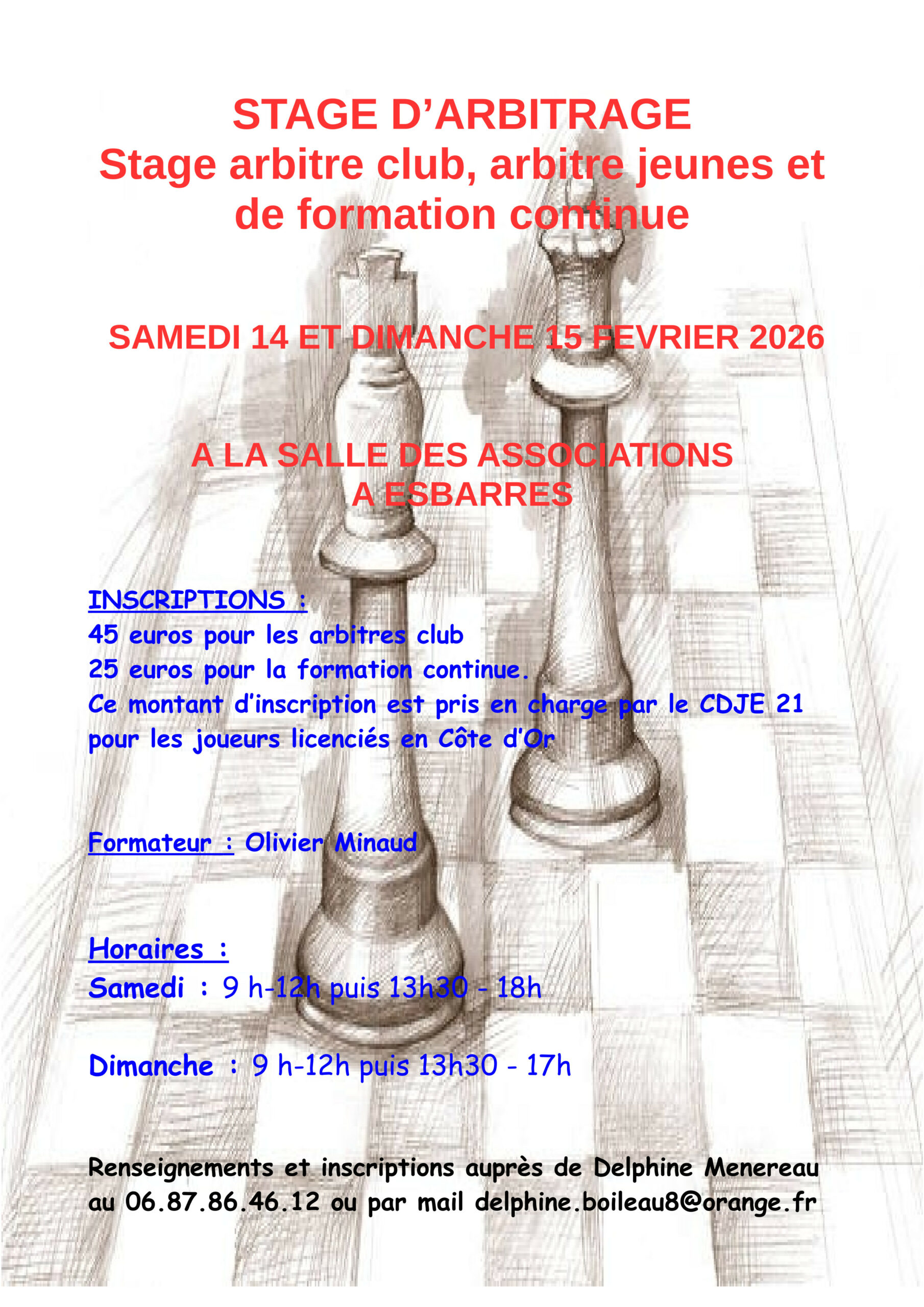 Le CDJE 21 organisera un stage d’arbitrage les 14 et 15 février à Esbarres.